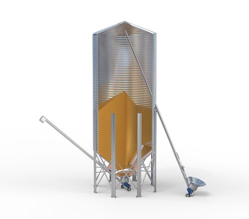 Silos ten służy do długoterminowego przechowywania różnych zbóż oraz kukurydzy i rzepaku. Dzięki lejowi rozładunek silosu odbywa się w sposób samoczynny, bez konieczności nagarniania końcówki zboża z podłogi. Zbiornik tego typu jest prawie 2 –krotnie droższy niż silos płaskodenny. Jednak dzisiaj większość sprzedawanych silosów to silosy lejowe. W leju umieszczony jest system rur wentylacyjnych zapewniających możliwość przedmuchania zboża przy pomocy dmuchawy. Silos AGOS wykonany jest z blachy falistej z najlepszych gatunkowo blach. Blacha falista zapewnia odporność na wgniecenia i wzmacnia całość konstrukcji. Falistość blachy powoduje odbijanie promieni słonecznych, obniżając temperaturę w zbiorniku. Lej ma kąt 45 stopni co powoduje łatwe opróżnianie silosu. Nogi silosu wykonane są z profili Omega i najmocniejszych blach S350. Śruby kołnierzowe M8 i M10 pokryte są specjalną powłoką SealerPlus przez co są 2-krotnie bardziej odporne na rdzę.