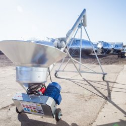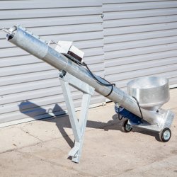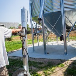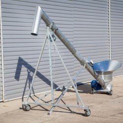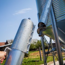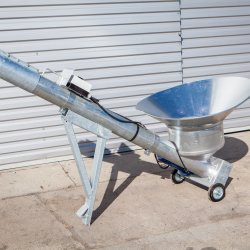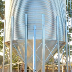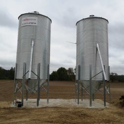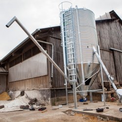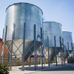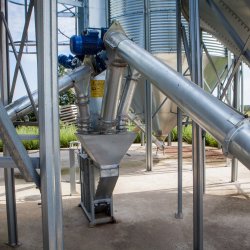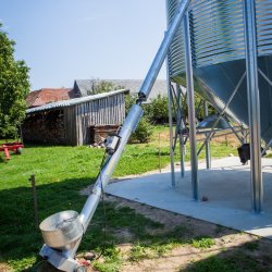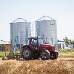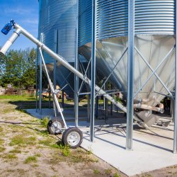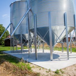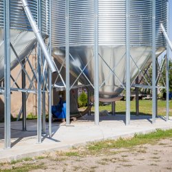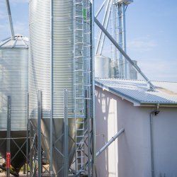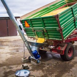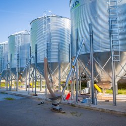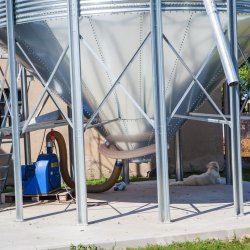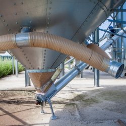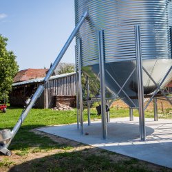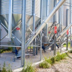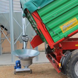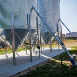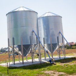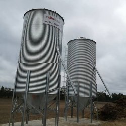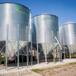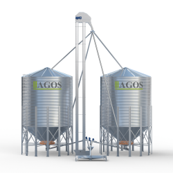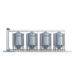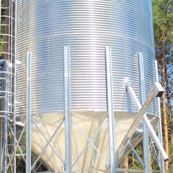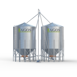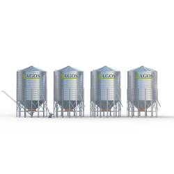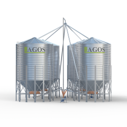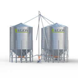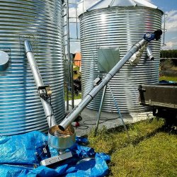 Produkujemy najtańsze baterie silosów z systemy załadunku i rozładunku turbożmijkami o średnicy 140 mm i wydajności 17t/h. Najczęściej sprzedajemy silosy zbożowe lejowe 2 x70t lub 4 x 100t. Popularne są też silosy zbożowe płaskodenne 2 x 75t lub 4 x 140t. Silosy płaskodenne są 40% tańsze niż silosy lejowe. Jednak silosy lejowe opróżniają się grawitacyjnie do zera, co jest ogromną ich zaletą. W przypadku silosów płaskodennych około 10% pojemności silosu trzeba nagarnąć ręcznie na przenośnik. Zakup wybieraka mija się z celem, gdyż koszt jego zakupu, powoduje ,że różnica w cenie pomiędzy silosem płaskodennym ,a lejowym staję minimalna. Obecnie popularniejsze są silosy lejowe, mimo ich wyższej ceny. Klienci najczęściej wybierają naszą turbo żmijkę do załadunku i rozładunku wielu silosów. Na stałe w silosach montujemy ukośne rury, a jedną turbo żmijką ładujemy i opróżniamy wszystkie silosy. Przy mniejszym obciążeniu dobrze sprawdza się przenośnik pionowy. Możliwy jest załadunek 3 silosów ustawionych szeregowo lub 4 silosów w kwadracie. Przy dużym obrocie zbożem zalecamy przenośnik kubełkowy z 4 silosami ustawionymi w kwadracie.