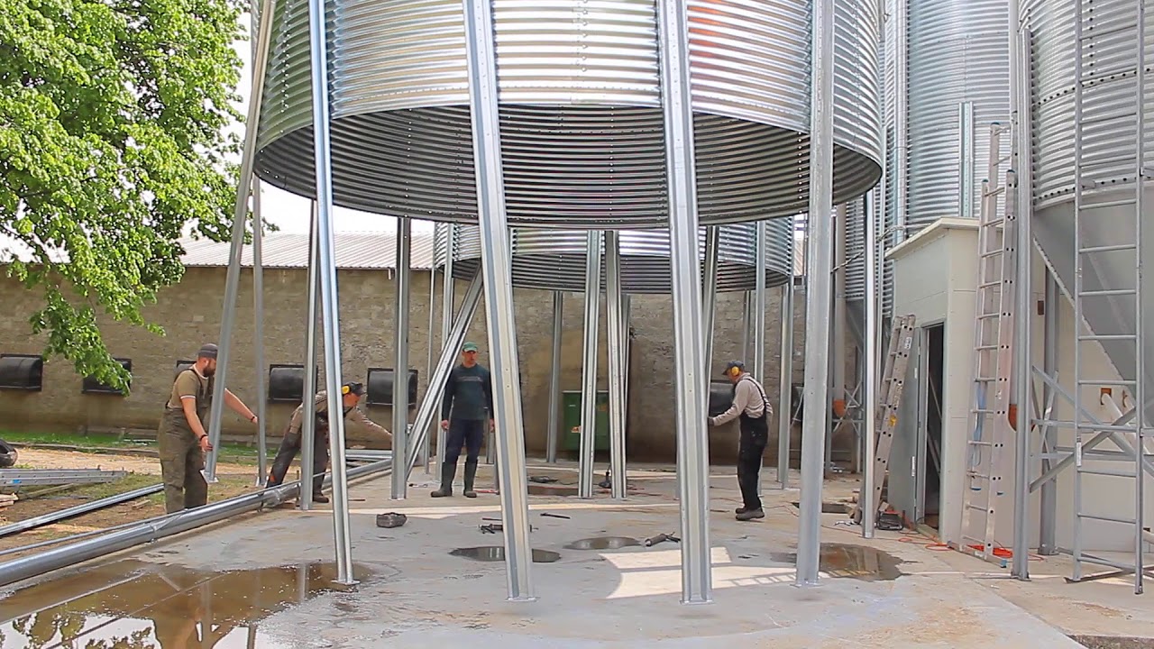 Produkujemy najtańsze baterie silosów z systemy załadunku i rozładunku turbożmijkami o średnicy 140 mm i wydajności 17t/h. Najczęściej sprzedajemy silosy zbożowe lejowe 2 x70t lub 4 x 100t. Popularne są też silosy zbożowe płaskodenne 2 x 75t lub 4 x 140t. Silosy płaskodenne są 40% tańsze niż silosy lejowe. Jednak silosy lejowe opróżniają się grawitacyjnie do zera, co jest ogromną ich zaletą. W przypadku silosów płaskodennych około 10% pojemności silosu trzeba nagarnąć ręcznie na przenośnik. Zakup wybieraka mija się z celem, gdyż koszt jego zakupu, powoduje ,że różnica w cenie pomiędzy silosem płaskodennym ,a lejowym staję minimalna. Obecnie popularniejsze są silosy lejowe, mimo ich wyższej ceny. Klienci najczęściej wybierają naszą turbo żmijkę do załadunku i rozładunku wielu silosów. Na stałe w silosach montujemy ukośne rury, a jedną turbo żmijką ładujemy i opróżniamy wszystkie silosy. Przy mniejszym obciążeniu dobrze sprawdza się przenośnik pionowy. Możliwy jest załadunek 3 silosów ustawionych szeregowo lub 4 silosów w kwadracie. Przy dużym obrocie zbożem zalecamy przenośnik kubełkowy z 4 silosami ustawionymi w kwadracie.